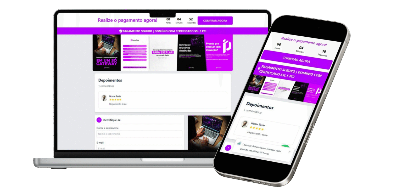 Transforme suas vendas com o checkout inteligente da InovaPag. Crie páginas de pagamento modernas, rápidas e 100% personalizáveis, que passam confiança e oferecem uma experiência de compra simples e profissional.